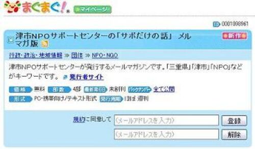 こんにちは。カワキタです。 ついに、津市NPOサポートセンターのメールマガジンができました。 その名も 津市NPOサポートセンターの「サポだけの話」 メルマガ版 です 津市NPOサポートセンターだからこそお伝えできるNPO話や、ブログでは書きき…